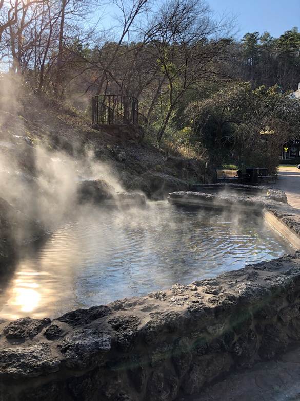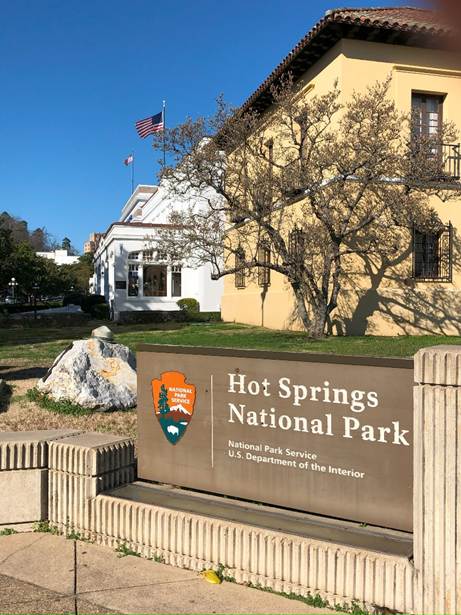 But alas, this is about Hot Springs National Park. The hot springs have been protected since 1821 and established as a national park in 1921. The hot springs flow from the western slope of Hot Springs Mountain. The hot springs are not preserved in their natural state – instead they are preserved for public consumption for use in bathing.